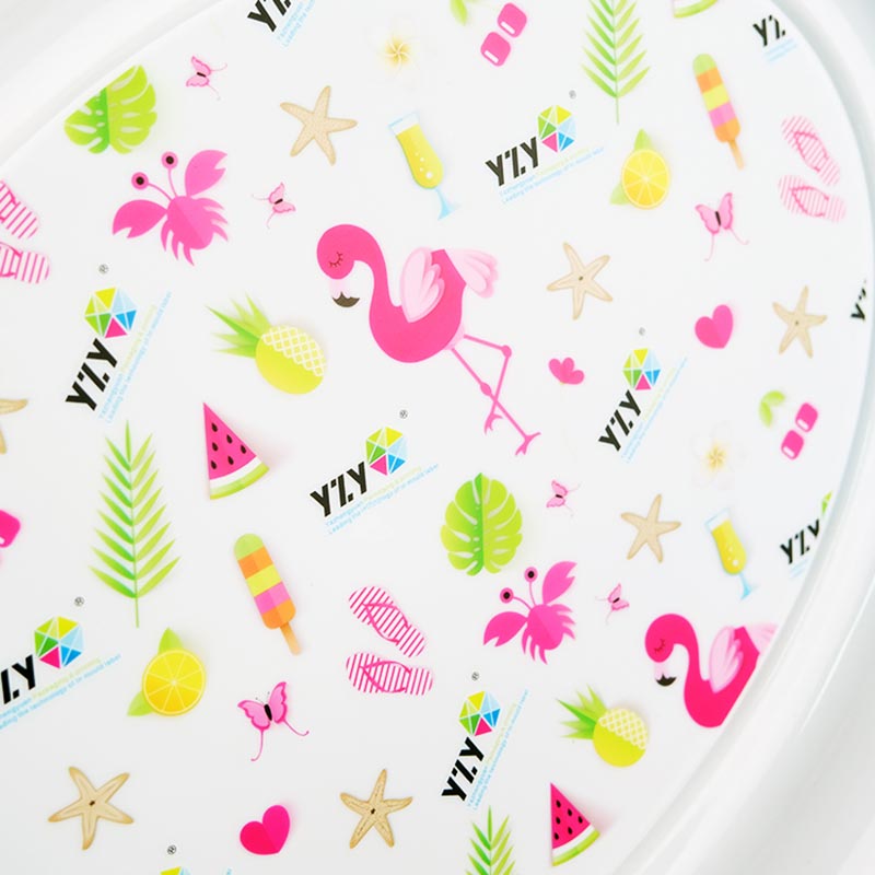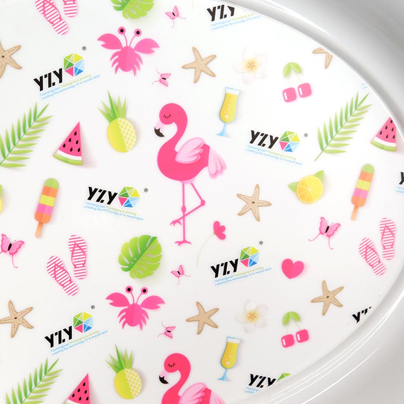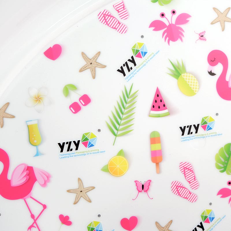 Bu özelleştirilebilir garnitür enjeksiyonlu kalıplama kalıp içi etiketi, sevimli çizgi film tasarımlarına sahip, çocuklar ve aileler için mükemmeldir. %100 BPA içermeyen ve toksik olmayan, gıdaya uygun PP malzemeden üretilmiştir. PP'nin özellikleri sayesinde dayanıklı ve ısıya dayanıklıdır, 70°C'de iki saat ısınmaya dayanabilir. Malzeme gıda standartlarına uygundur.